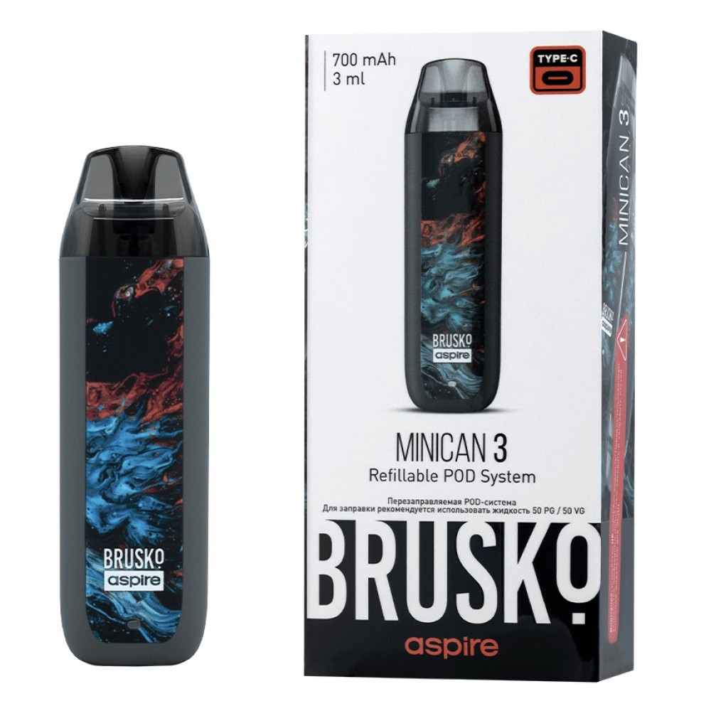 Перезаправляемая Под-Система Бруско Миникан 3 (Brusko Minican 3) 700 mah, Серый Флюид - купить в Магадане